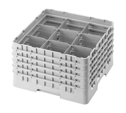 Camrack® Glass Rack, with (5) soft gray extenders, full size, 19-3/4" x 19-3/4" x 12-1/8", (9) compartments, 5-7/8" max. dia., 10-1/8" max. height, beige, HACCP compliant, NSF, Made in USA