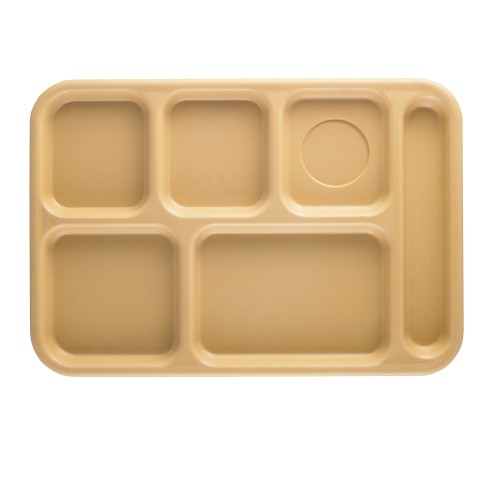 Budget School Tray, 6-compartment, 10" x 14-1/2", rectangular, full portion, textured surface, scratch resistant, dishwasher safe, ABS, tan, Made in USA