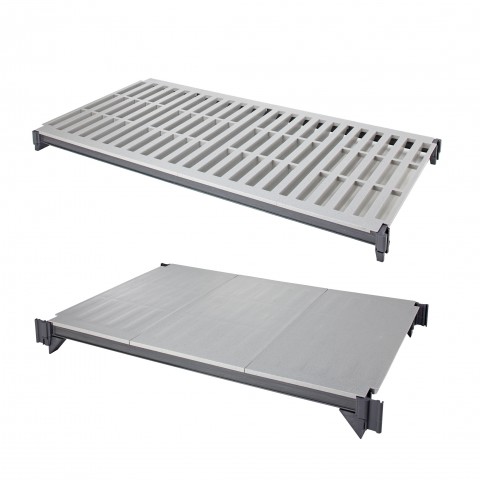 Camshelving® Basics Plus Shelf Kit, 18"W x 42"L, withstands temperature from -36°F (-38°C) to 190°F (88°C), includes: vented and solid shelf plates for 5 shelves with Camguard® antimicrobial protection, (10) traverses & (5) bags of 8 dovetails (4 each A & B), brushed graphite, NSF listed components, Made in USA