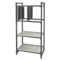 Camshelving® Storage Rack, 21-1/8"D x 19-1/2"H, fits 21" deep shelving, fits Basics® Plus Series, accommodates (4) full-size 4" deep pans, (2) 6" deep boxes , (7) 18" x 26" sheet pans OR (4) 3" deep pizza dough boxes, starter kit includes: (2) rail panels, (8) panel bracket sets, (8) traverse brackets & (8) thumbscrews, brushed graphite, NSF, Made in USA