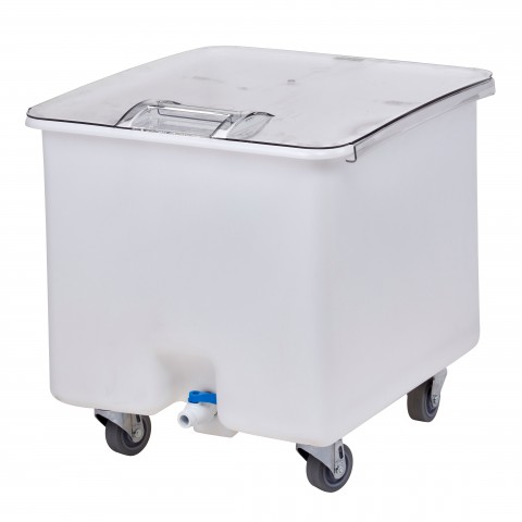 Camcrisper® Vegetable Crisper, mobile, 32 gallon capacity, molded polyethylene with sliding cover, with bin securely attached to base plate, white