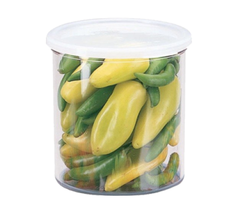 Crock, 1.2 qt., 4-7/8" cut out dia., round, with polyethylene lid, dishwasher safe, polycarbonate, clear, NSF, Made in USA