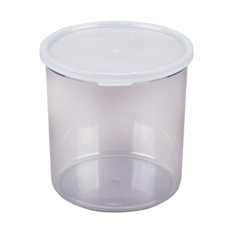Crock, 2.7 qt., 6-3/16" cut out dia., round, with polyethylene lid, dishwasher safe, polycarbonate, clear, NSF, Made in USA