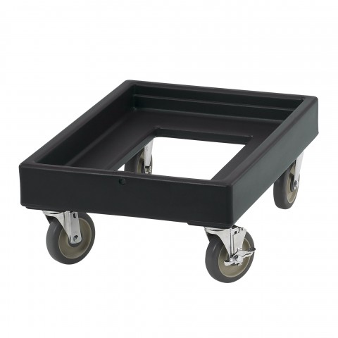 Camdolly®, 28-5/8"L x 19-5/8"W x 10-1/2"H (exterior dimensions), load capacity 300 lbs., 5" casters (2 fixed, 2 swivel, 1 with brake), black, NSF