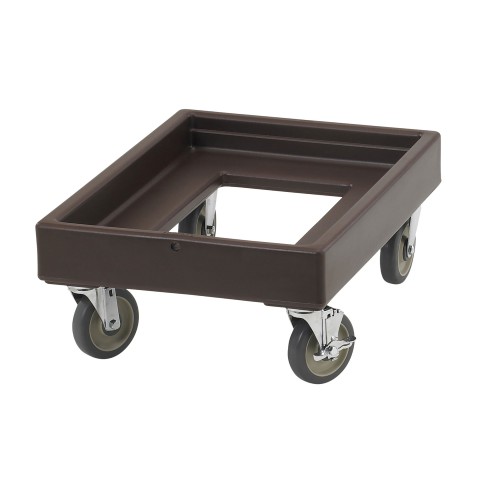 Camdolly®, 28-5/8"L x 19-5/8"W x 10-1/2"H (exterior dimensions), load capacity 300 lbs., 5" casters (2 fixed, 2 swivel, 1 with brake), dark brown, NSF