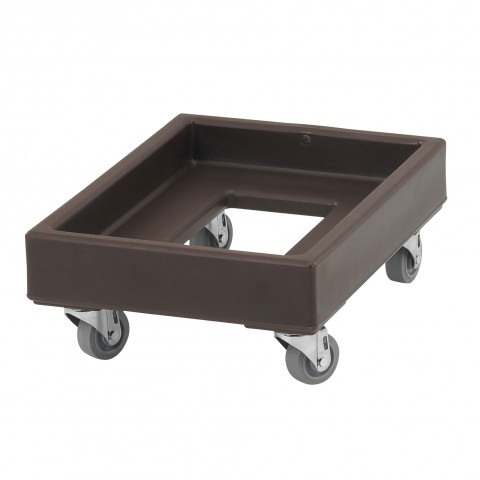 Camdolly®, 21-3/4"L x 16-1/4" W x 8-5/16"H (exterior dimensions), load capacity 350 lbs., holds #10 can cases & 14" x 19" milk crates, (4) 3" heavy duty swivel casters, no brakes, dark brown, NSF