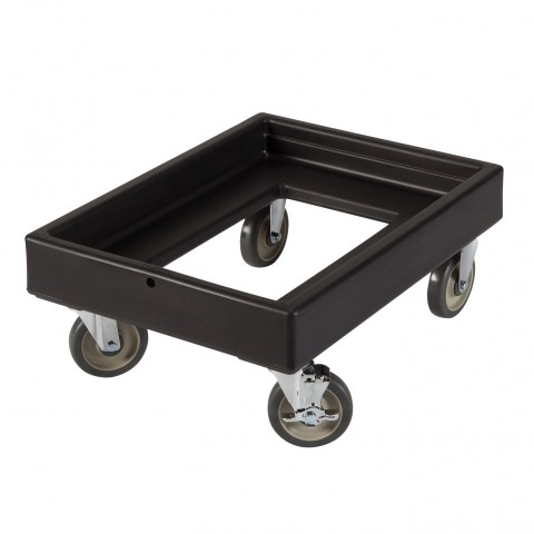 Camdolly®, 25-1/2"L x 19-1/4"W x 10-1/2"H (exterior dimensions), load capacity 350 lbs., 5" casters (2 fixed, 2 swivel, 1 with brake), black, NSF