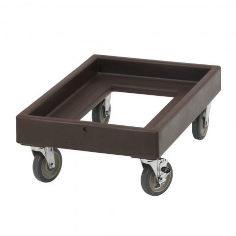 Camdolly®, 25-1/2"L x 19-1/4"W x 10-1/2"H (exterior dimensions), load capacity 350 lbs., 5" casters (2 fixed, 2 swivel, 1 with brake), dark brown, NSF