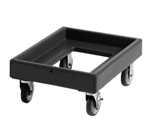 Camdolly®, 25-1/2"L x 19-1/4"W x 10-1/2"H (exterior dimensions), load capacity 350 lbs., 5" casters (2 fixed, 2 swivel, 1 with brake), charcoal gray, NSF