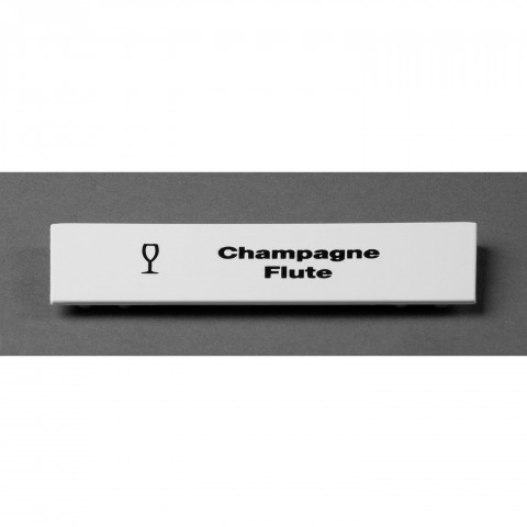 Camrack® Extender ID clip, 5"L x 1-9/16"H, snap on, for all camracks, pre-printed "Champagne Flute", ABS, white (must be purchased in case quantities)