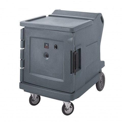 Camtherm® Hot Cart, 30-1/2"W x 42"D x 42-3/8"H, electric, low profile, single door, holds (11) 18 X 26 sheet pans (requires five additional rail sets), (12) 12" x 20" x 2-1/2" deep food pans, (8) 12" x 20" x 4" deep food pans, (6) 12" x 20" x 6" deep food pans, or (4) 12" x 20" x 8" deep food pans, temperature control dial, on-off power switch, adjustable chrome plated steel slide rails, Celsius solar digital thermometer, molded-in handles & bumpers, nylon door latches, serving top, with vent, menu clip, polyethylene exterior, (2) 6" front swivel casters with brakes & (2) 10" rear casters, cord/plug, granite gray, 110v/50/60/1-ph, 1035 watts, 9.1 amps, NEMA 5-15P, NSF, ENERGY STAR®, cETLus
