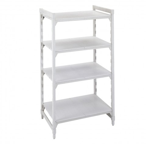 Camshelving® Premium Starter Unit, 21"W x 30"L x 64"H, 4-tier, withstands temperature -36°F (-38°C) to 190°F (88°C), includes: (4) solid polypropylene shelf plates with Camguard® antimicrobial protection, (2) pre-assembled post kits (posts constructed of steel with polypropylene exterior), (8) traverses & molded-in dovetails, 800 lbs. capacity per shelf /2,000 lbs. max capacity, speckled gray, NSF