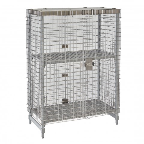 Camshelving® Stationary Security Unit, 26-3/4"W x 50-1/4"L x 64-1/2"H, includes: (2) stationary post kits, (2) vented shelf kits: steel posts with polypropylene exterior, molded in dovetails & (2) sets of post connectors, and (1) stainless steel full wrap security cage (CPFWSC244860), weight bearing capacity of 800 lbs.