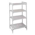 Camshelving® Premium Starter Unit, 24"W x 60"L x 84"H, 4-tier, withstands temperature -36°F (-38°C) to 190°F (88°C), includes: (4) vented polypropylene shelf plates with Camguard® antimicrobial protection, (2) unassembled post kits (posts constructed of steel with polypropylene exterior), (8) traverses & molded-in dovetails, 800 lbs. capacity per shelf /2,000 lbs. max capacity, speckled gray, NSF