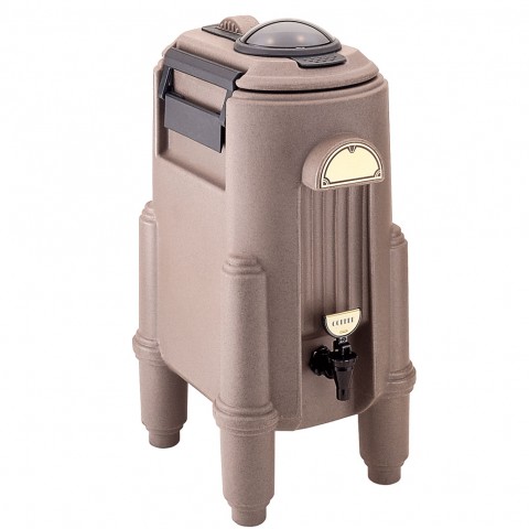 Camserver®, 5 gallon, 13-1/4"W x 18-1/4"D x 28"H, hot or cold, self-sealing gasket, nylon latches, (2) brass identity plate (coffee/decaf or tea/hot water), foam insulation, dark taupe, NSF