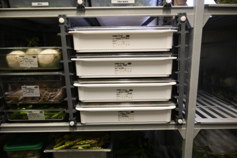 Camshelving® Storage Rack, 21-1/8"D x 19-1/2"H, fits 21" deep shelving, fits Premium® and Elements® Series, accommodates (4) full-size 4" pans, (2) 6" deep boxes , (7) 18" x 26" pans OR (4) 3" deep pizza dough boxes, add-on kit includes: (1) rail panels, (4) panel bracket sets, (4) traverse brackets & (4) thumbscrews, brushed graphite, NSF, Made in USA
