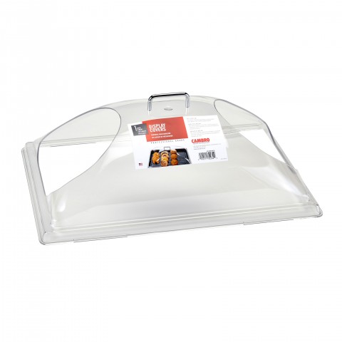 Camwear® Display Dome Cover, 21-7/8"W x 14-3/4"D x 8"H, fits 12" x 20" tray, with (2) ends cut, chrome handles are attached, polycarbonate, clear