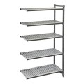 Camshelving® Elements XTRA Stationary Add-On Unit, 18"W x 24"L x 84"H, 5-tier, withstands temperature from -36°F (-38°C) to 190°F (88°C), includes: (5) vented reinforced polypropylene shelf plates with Camguard® antimicrobial protection, (2) composite posts with leveling feet installed, pre-assembled post connectors & wedges, (10) Universal Traverses &(5) bags of 4 dovetails (10 left, 10 right), 800 lbs. capacity per shelf /2,400 lbs. max capacity, speckled gray, NSF (NOTE: This is a new product line. It is NOT compatible with original Elements Series products.)