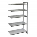 Camshelving® Elements XTRA Stationary Add-On Unit, 21"W x 54"L x 84"H, 5-tier, withstands temperature from -36°F (-38°C) to 190°F (88°C), includes: (4) vented and (1) solid reinforced polypropylene shelf plates with Camguard® antimicrobial protection, (2) composite posts with leveling feet installed, pre-assembled post connectors & wedges, (10) Universal Traverses &(5) bags of 4 dovetails (10 left, 10 right), 800 lbs. capacity per shelf /2,400 lbs. max capacity, speckled gray, NSF (NOTE: This is a new product line. It is NOT compatible with original Elements Series products.)