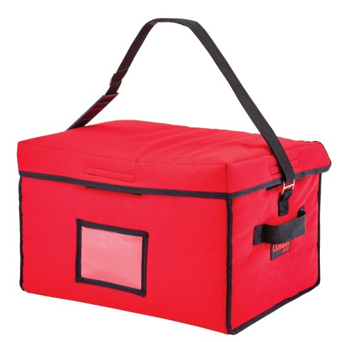 GoBag® Delivery Bag, jumbo, 18" x 14" x 12", velcro lid, ticket pouch, sewn-in adjustable strap, high density insulation, machine washable, nylon fabric, Cambro red