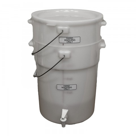 Hand Wash Starter Station, includes; (1) 6 gallon dispenser with drip-proof spigot, bail & sure-grip handle (DSPR6148), (1) 22 qt. stain resistant pail with bail (PWB22148), and (2) handwashing only stickers, impact resistant, dishwasher safe, polyethene, white, NSF