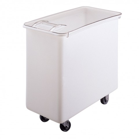 Ingredient Bin, mobile, 34 gallon capacity, molded polyethylene with sliding cover, (4) 3" heavy duty casters (2 front swivel, 2 fixed), with bin securely attached to base plate, white with clear cover, NSF