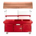 CamKiosk® Cart, with 4 pan wells and beige canopy, 85-1/8" x 33-1/2" x 94", polyethylene construction, (4) 6" swivel casters, 2 with brakes, foam insulation, hot red