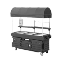 CamKiosk® Cart, with 6 pan wells and Kentucky green canopy, 85-1/8" x 33-1/2" x 94", polyethylene construction, foam insulation, (4) 6" swivel casters, 2 with brakes, Kentucky green
