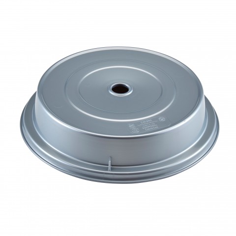 Camwear® Camcover®, low profile, inside dia. 9-1/8", outside height 2", stackable, for heated carts up to 210°F, lightweight polycarbonate, dishwasher safe, silver, NSF