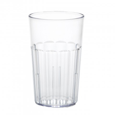 Newport Tumbler, fluted, 14 oz., top dia. 3-1/8", impact resistant plastic, interior stacking lugs, Sani-Rim lip, dishwasher safe, SAN, clear