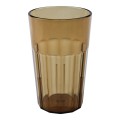 Newport Tumbler, fluted, 14 oz., top dia. 3-1/8", impact resistant plastic, interior stacking lugs, Sani-Rim lip, dishwasher safe, SAN, amber