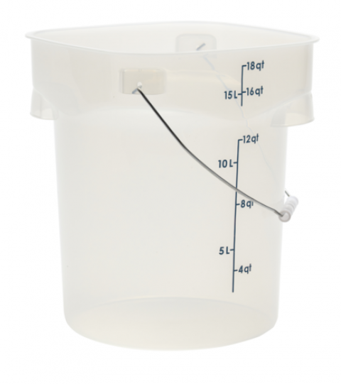 CamRound® FreshPro Pail with Bail, 18 qt. capacity, 11.4"L x 11.4"W x 13.3"H, stain resistant, dishwasher safe, polypropylene, translucent, NSF, Made in USA