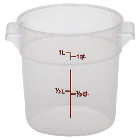 Storage Container, round, 1 qt., 6-1/16" dia. x 5"H, translucent, polypropylene, NSF