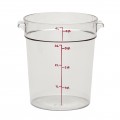 Camwear® Storage Container, round, 4 qt., 8-3/16" dia. x 8-9/16"H, withstands temperature of -40° F to 210° F, stain resistant, molded-in handle, durable polycarbonate construction, (covers sold separately), clear, NSF