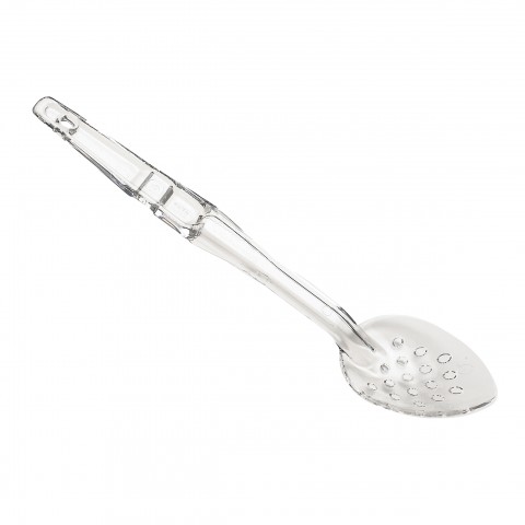 Deli Spoon, 13", perforated, notched back, hanging hole, dishwasher safe, polycarbonate, clear, NSF