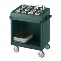 Dish Cart & Cutlery Rack, (12) compartments, 38-1/8"L x 22-3/4"W x 41-1/4"H, includes flatware cylinders, vinyl cover, (4) 6" swivel casters, polyethylene, granite green, NSF