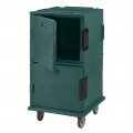 Ultra Camcart® Food Pan Carrier, front loading, one-piece double wall polyethylene shell, foam insulation, holds (24) 2-1/2" deep full size pans, (16) 4" deep full size pans, (12) 6" deep full size pans, (8) 8" deep full size pans, approximate capacity 120 qt., molded-in handles & bumpers, nylon latch, air-tight gasket, vent cap, (4) 6" casters (2 fixed, 2 swivel, 1 with brake), granite green, NSF, Made in USA