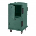Ultra Camcart® Food Pan Carrier, front loading, one-piece double wall polyethylene shell, foam insulation, holds (24) 2-1/2" deep full size pans, (16) 4" deep full size pans, (12) 6" deep full size pans, (8) 8" deep full size pans, approximate capacity 120 qt., molded-in handles & bumpers, nylon latch, air-tight gasket, vent cap, (4) heavy duty 6" casters (2 fixed, 2 swivel with brakes), green, NSF, Made in USA