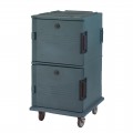 Ultra Camcart® Food Pan Carrier, front loading, one-piece double wall polyethylene shell, foam insulation, holds (24) 2-1/2" deep full size pans, (16) 4" deep full size pans, (12) 6" deep full size pans, (8) 8" deep full size pans, approximate capacity 120 qt., security package, tamper resistant, molded-in handles & bumpers, nylon latch, air-tight gasket, vent cap, (4) heavy duty 6" casters (2 fixed, 2 swivel with brakes), granite gray, NSF, Made in USA