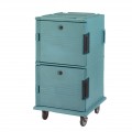 Ultra Camcart® Food Pan Carrier, front loading, one-piece double wall polyethylene shell, foam insulation, holds (24) 2-1/2" deep full size pans, (16) 4" deep full size pans, (12) 6" deep full size pans, (8) 8" deep full size pans, approximate capacity 120 qt., security package, tamper resistant, molded-in handles & bumpers, nylon latch, air-tight gasket, vent cap, (4) heavy duty 6" casters (2 fixed, 2 swivel with brakes), slate blue, NSF, Made in USA