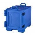 Ultra Pan Carrier®, front loading, one-piece poly shell, polyurethane insulation, holds 1/2 & 1/3 & full size pans 2-1/2" to 8" deep, approximate capacity 36 qt., holds food at safe temperature for 4+ hours, (2) handles, fully removable gasketless door, door opens 270°, labeling area on door, stackable, dishwasher safe, navy blue, NSF