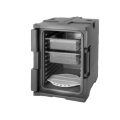Ultra Pan Carrier®, front loading, one-piece poly shell, foam insulation, holds 1/2, 1/3 & full size pans 2-1/2" to 8" deep, approximate capacity 60 qt., security package, tamper resistant, molded-in handles, nylon latch, air-tight gasket, vent cap, stackable, dishwasher safe, navy blue, NSF, Made in USA