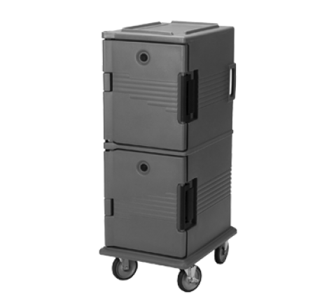 Ultra Camcart® Food Pan Carrier, front loading, one-piece double wall polyethylene shell, foam insulation, holds (12) 2-1/2" deep full size pans, (8) 4" deep full size pans, (6) 6" deep full size pans, (4) 8" deep full size pans, approximate capacity 60 qt., security package, tamper resistant, molded-in handles & bumpers, nylon latch, air-tight gasket, vent cap, (4) heavy duty 6" casters (2 fixed, 2 swivel, 1 with brake), granite sand, NSF