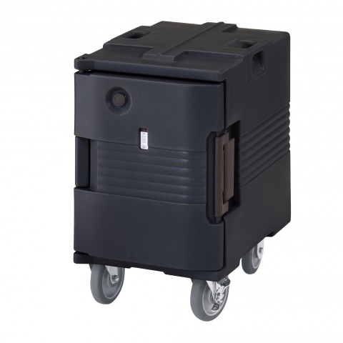 Heated Ultra Pan Carrier®, 18-1⁄8"W x 26-3⁄8"D x 31-1⁄4"H, front loading, one-piece poly shell, foam insulated, holds (6) 2-1/2" deep food pans (4) 4-1/2" deep food pans, (3) 6" deep food pans, (2) 8" deep food pans, molded-in handles, nylon latch, vent cap, stackable, (4) 6" casters (2 swivel, 2 fixed, 1 with brake), 110v/50/60/1-ph, 230 watts, 2.0 amps, NEMA 5-15P, black, NSF, ENERGY STAR®, cETLus, CE