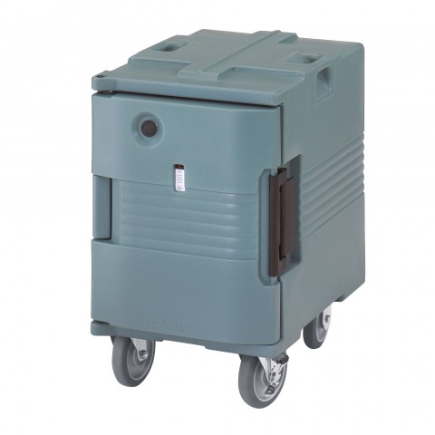 Heated Ultra Pan Carrier®, 18-1⁄8"W x 26-3⁄8"D x 31-1⁄4"H, front loading, one-piece poly shell, foam insulated, holds (6) 2-1/2" deep food pans (4) 4-1/2" deep food pans, (3) 6" deep food pans, (2) 8" deep food pans, molded-in handles, nylon latch, vent cap, stackable, (4) 6" casters (2 swivel, 2 fixed, 1 with brake), 110v/50/60/1-ph, 230 watts, 2.0 amps, NEMA 5-15P, slate blue, NSF, ENERGY STAR®, cETLus, CE