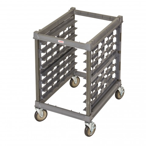 Ultimate Sheet Pan Rack, 23-1/4"W x 30-7/8"L x 31-1/2"H, under counter unit, 1-1/2" rail spacing, molded positioning ribs, (15) full-size Camtray® (1826) or (30) half-size Camtray® (1318) capacity, temperature range -36°F (-38°C) to 190°F (88°C), 55 lbs. per shelf/90 lbs. per rack, (2) locking (2) non-locking 3" center-stem non-marking metal swivel casters composite plastic, brushed graphite