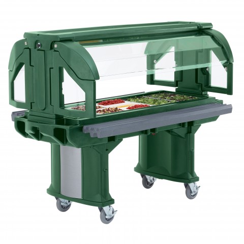 Versa Food Bar™ Serving Buffet, cold food, 5 ft. unit, 69"L x 42-1/2"W x 62-3/4"H, holds (4) full size pans, accommodates various size food pans up to 6", cooled with optional Camchillers® or ColdFest®, double-wall polyethylene, molded-in handles, threaded faucet drain, non-electrical, (4) 6" swivel casters with brakes, Kentucky green, NSF