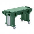 Versa Food Bar™ Work Table, cold food, 5 ft. unit, 69"L x 27"W x 29-1/4"H, low work height, holds (4) full size pans, accommodates various size food pans up to 6", cooled with optional Camchillers® or ColdFest®, double-wall polyethylene, molded-in handles, threaded faucet drain, non-electrical, (4) 6" swivel casters with brakes, Kentucky green (made to order), NSF
