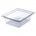 StorPlus™ Food Pan, 1/2 size, 5.5 qt. capacity, 12-3/4" x 10-19/50" x 4" deep, molded-in capacity indicators, temperature range: -40° - 212° F, reinforced top & bottom corners, spoonable bottom, dishwasher safe, smooth interior finish, textured non-slip exterior finish, polycarbonate, clear, NSF, Made in USA