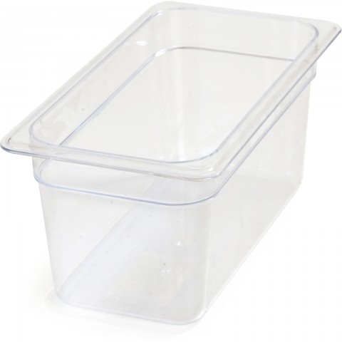 StorPlus™ Food Pan, 1/3 size, 5.7 qt. capacity, 12-3/4" x 7" x 6" deep, capacity indicators, reinforced corners, textured non-slip finish, temperature range: -40° to 212° F, dishwasher safe, polycarbonate, clear, NSF, Made in USA, meets EN631-1 Euro Norm standards